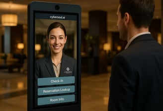 CyberSoul creates hyper-realistic digital humans that operate inside interactive kiosks, serving as AI-powered front-desk staff in hotels, retail stores, and public spaces. These avatars greet customers, answer questions, manage reservations, and provide 24/7 support with a human face. By remembering individual customer profiles, CyberSoul delivers personalized, intelligent service that feels natural, engaging, and consistent every time.